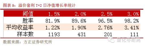 由图表8亦可看出,2%的阈值下套利期间净值上升的可能性最大。