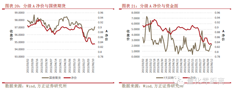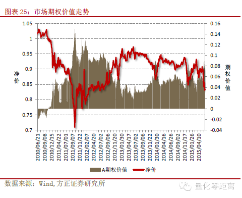 方正金工之前发布的专题《她的美还未曾被发现——分级基金A专题报告》对分级A的期权价值做了深入的讨论,研究发现折溢价、母基金波动率、上折条款、下折条款、约定利率、母基金下折距离、AB比和无风险利率等因素共同决定于分级A的期权价值。