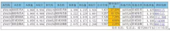 A价格(实时) B价格(实时) 赎回费<2份母基净值(估算)