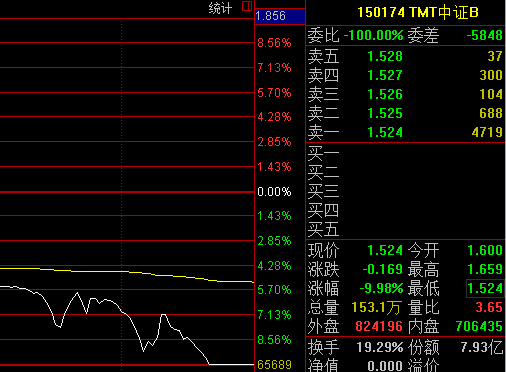 另外一只深圳分级信诚TMT(165522)就比较悲剧,7月22日合并溢价高达7%,是当时溢价最高的一只分级,很多兄弟一激动就冲进去了,等到今天拆出来可以卖了,结果B类跌停,截至收盘变成折价1.5%,典型的套利反被套。