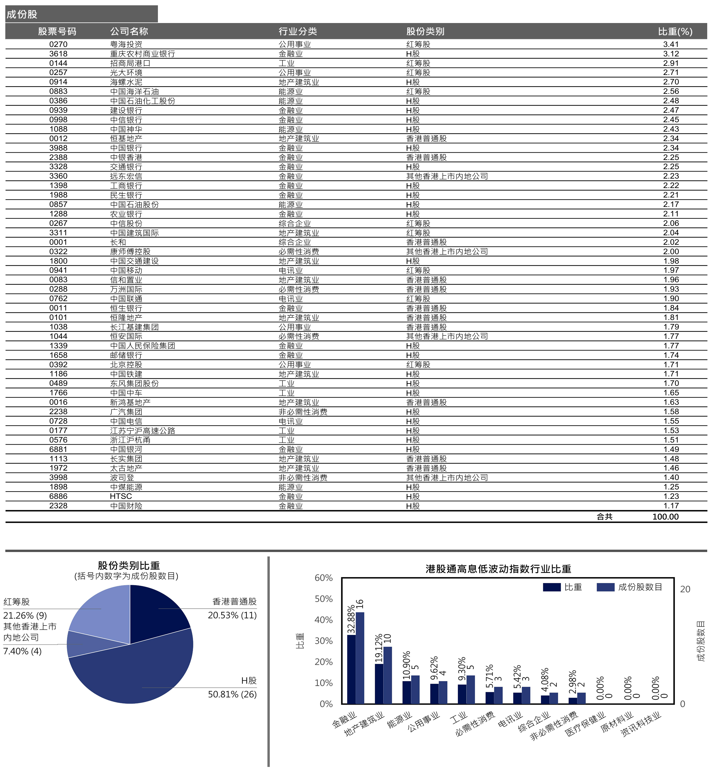 多方品种是恒生红利低波ETF(159545),跟踪指数是恒生港股通高股息低波动指数,在多个港股ETF选择它是因为长期跑赢恒生指数和恒生国企指数,而且样本数较多(50只),行业比较分散,最大权重股粤海投资也仅占3.41%,风险分布性好,半年调整指标股一次,频率适中。这个跟踪的ETF,其费率低廉,0.15%管理费和0.05%托管费,在目前的港股通红利类ETF里面是最低的。