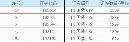 截至2013年9月5日,13国债01剩余期限4.35年,13国债03剩余期限6.39年,13国债08剩余期限6.62年,13国债13剩余期限4.73年,13国债15剩余期限6.85年。