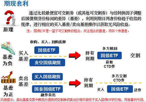 风险提示:卖出基差交易中,由于期货方可任意选择CTD券进行交割,CTD券一般都是最便宜的,交割券的卖出价格可能低于买入国债ETF的价格,导致套利出现亏损。