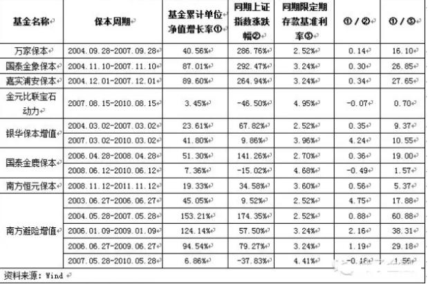 从保本型基金的业绩来看,于2003年6月27日成立的我国首只保本型基金——南方避险增值,提供了最长时间的业绩记录。在经历过牛市和熊市阶段后,南方避险增值的投资运作能够比较鲜明地体现出保本型基金的特点。