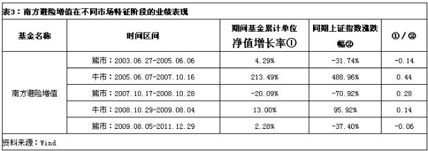 表3:南方避险增值在不同市场特征阶段的业绩表现