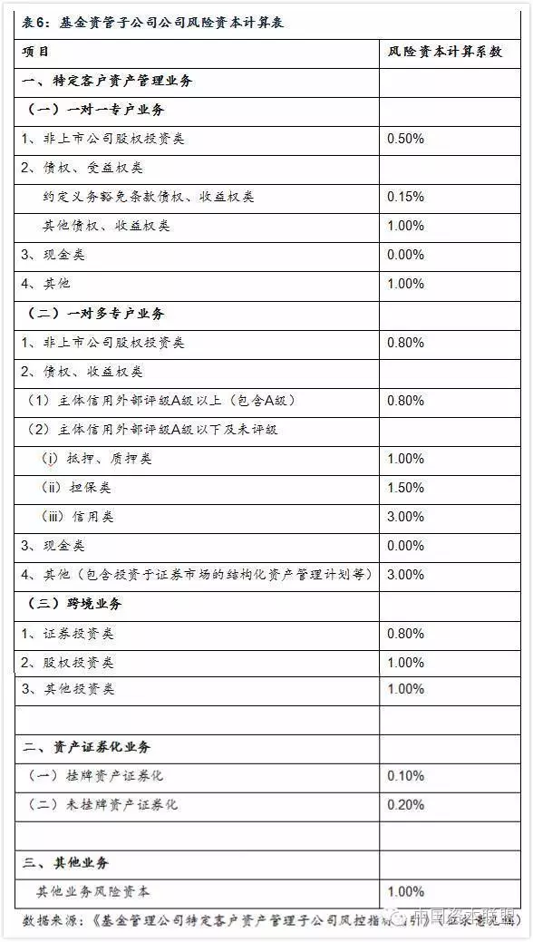 82号文之后,基金子公司通道业务监管趋严,按照2016年5月出台的《基金管理公司特定客户资产管理子公司风控指标指引》(征求意见稿)、《证券期货经营机构落实资产管理业务“八条底线”禁止行为细则》和《证券投资基金管理公司子公司管理规定》(征求意见稿)相关规定,基金子公司新开展的业务均需按照要求(最高3.00%)计算风险资本,并根据特定客户资产管理业务全部管理费收入的10%计提风险准备金(计提总额以基金子公司管理资产规模净值的1%为上限)。同时严格控制了杠杆倍数,其中期货、固定收益、非标类资管计划杠杆不得超过3倍。