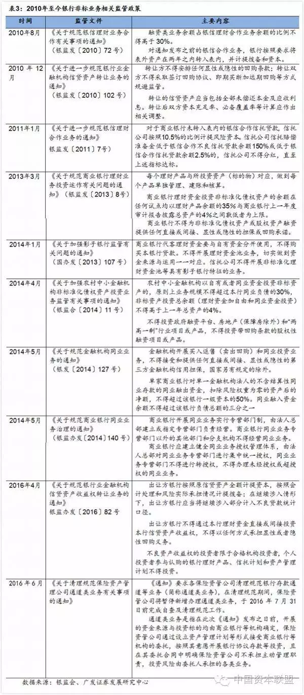 2013年出台的“8号文”,对商业银行理财资金直接或通过非银行金融机构、资产交易平台等间接投资于“非标准化债权资产”业务做出了规定。限制了银行理财资金投资非标准化债权资产规模的上限,为理财产品余额的35%与商业银行上一年度审计报告披露总资产的4%之间孰低者。同时规定商业银行对之前投资但达不到本通知要求的非标资产,应比照自营贷款于2013年底前完成风险加权资产计量和资本计提。