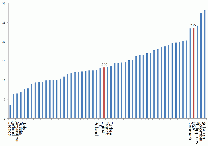从最新的CAPE数据来看,中国大陆的CAPE目前为13.36倍,在有跟踪的55个股市中排名27位,只是中游水平,显然仍算不上特别有投资价值。而希腊、爱尔兰、俄罗斯、意大利等凭借单位数CAPE值,反而是最具吸引力的市场。近期欧洲股市相比美股走强,显然从罗伯特·希勒的CAPE来看,也是具有基本面支撑的。